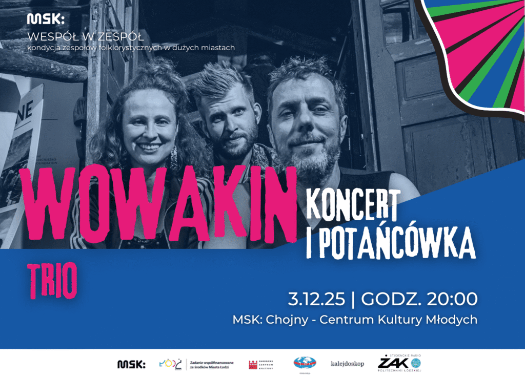 Jak dziś funkcjonują zespoły folklorystyczne w dużych miastach? Z jakimi wyzwaniami mierzą się w świecie popkultury i dynamicznych przemian społecznych? Odpowiedzi na te pytania poszukają uczestnicy pierwszego w Polsce interdyscyplinarnego forum „Wespół w zespół – kondycja zespołów folklorystycznych w dużych miastach”, organizowanego przez Miejską Strefę Kultury w Łodzi. Na zakończenie pierwszego dnia forum zapraszamy na koncert i potańcówkę z zespołem WoWaKin Trio – muzyczną