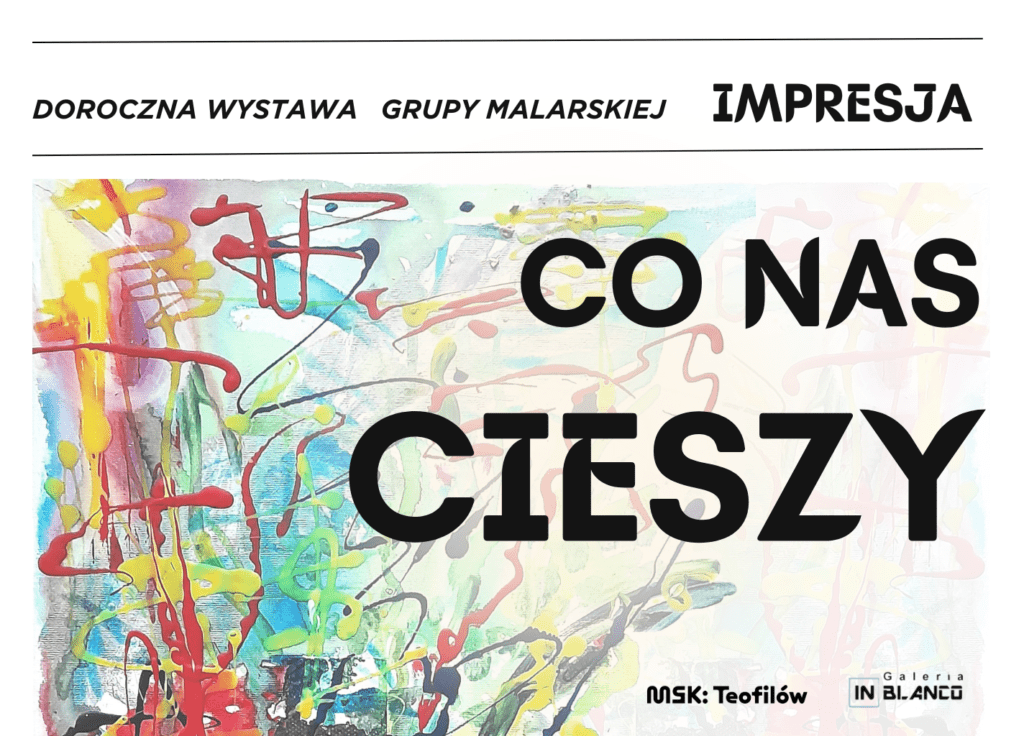 Zapraszamy na doroczną wystawę Grupy Malarskiej Impresja!„Co nas cieszy” – bo tak brzmi tytuł wystawy, to zbiór prac uczestników zajęć w MSK: Teofilów. Odkryj razem z nami, co sprawia, że serce bije nam szybciej, uśmiech rozjaśnia nasze twarze, a radość rozkwita w naszych sercach.Co sprawia, że życie jest warte przeżywania? Czy to chwila spędzona z […]