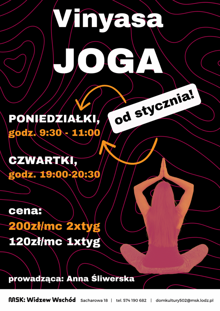 W czwartki w godz. 19:00-20:30 odbywa się Vinyasa joga.