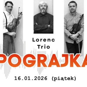Zapraszamy 16.01.2026 (piątek) na Pograjkę, którą poprowadzi zespół Lorenc Trio.O godzinie 18:30 rozpoczniemy warsztaty taneczne, a około 19:30 – potańcówkę. Lorenc Trio – efemeryczny boys-band (bojsbend) tradycyjny. Panowie znani z wielu formacji muzycznych (Bractwo Ubogich, Tęgie Chłopy, Muzykanci, Lautari, RPA, Odpoczno, Kożuch, Niewte, etc.). Wspólnie nagrali materiał dźwiękowy, który dotychczas nie ukazał się na płycie. W międzyczasie współtworzyli muzykę do