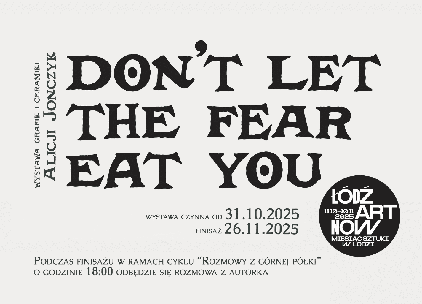 DON’T LET THE FEAR EAT YOU | Alicja Jonczyk | Wystawa | Spotkanie z Artystką | Łódź Art Now