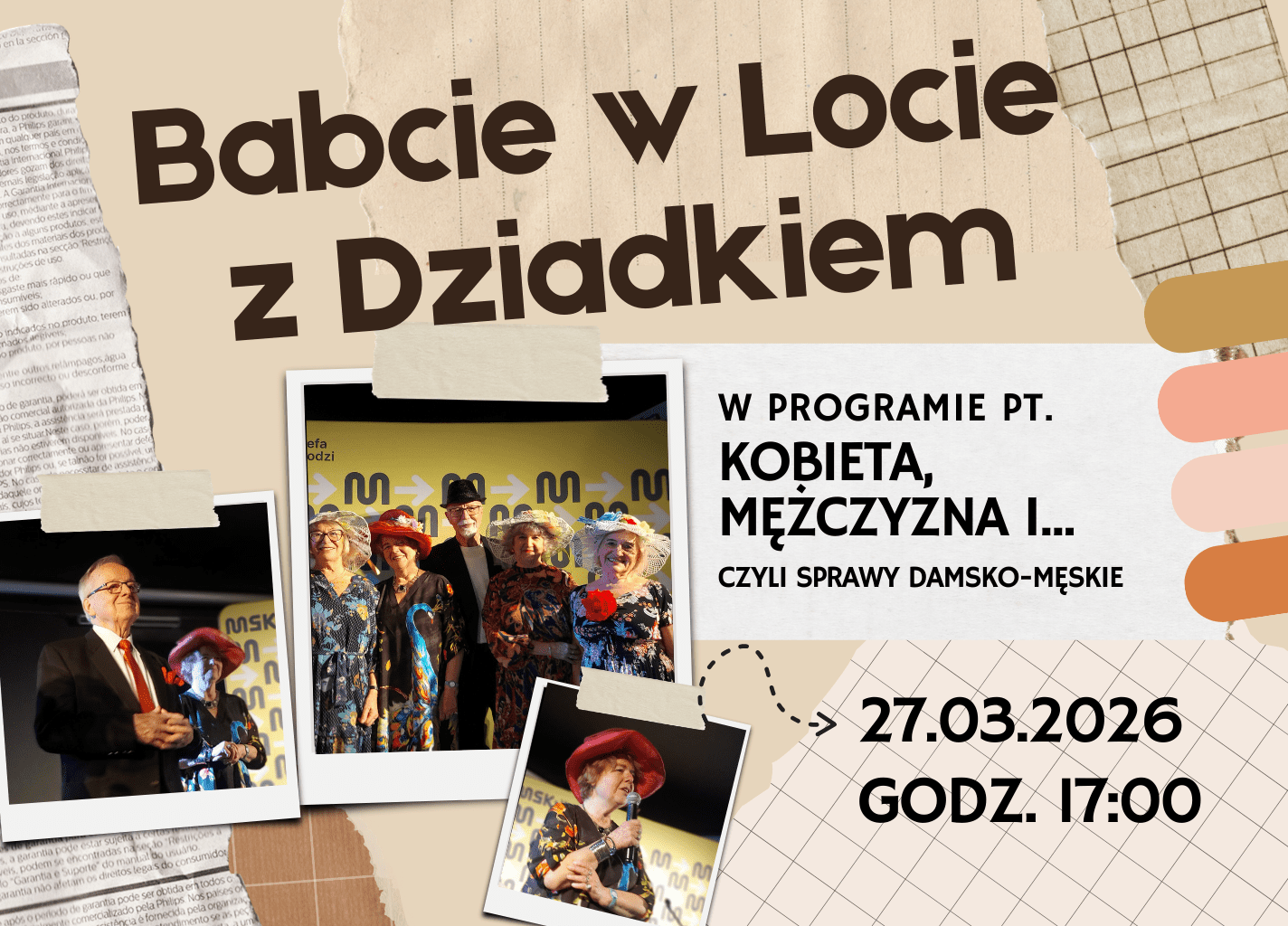 Klub Dąbrowa zaprasza serdecznie na wyjątkowy wieczór z kabaretem Babcie w Locie z Dziadkiem 27 marca (piątek) na godz. 17:00. Grupa zaprezentuje się w programie pt. Kobieta, mężczyzna i… czyli sprawy damsko-męskie.