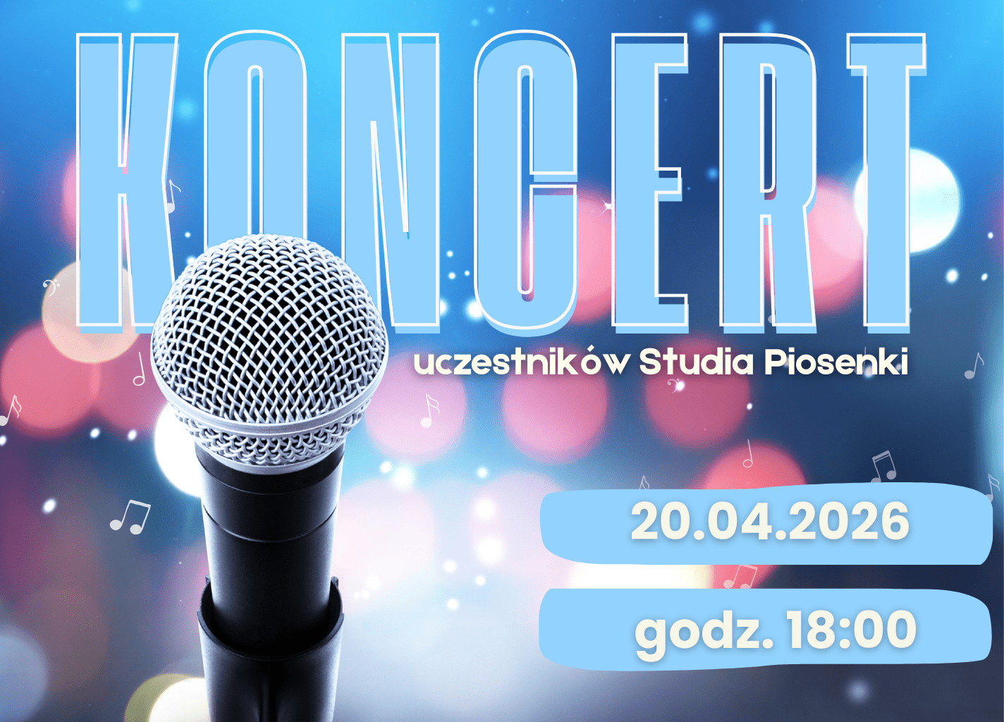 Serdecznie zapraszamy na wyjątkowy koncert, podczas którego wystąpią uczestnicy Studia Piosenki.