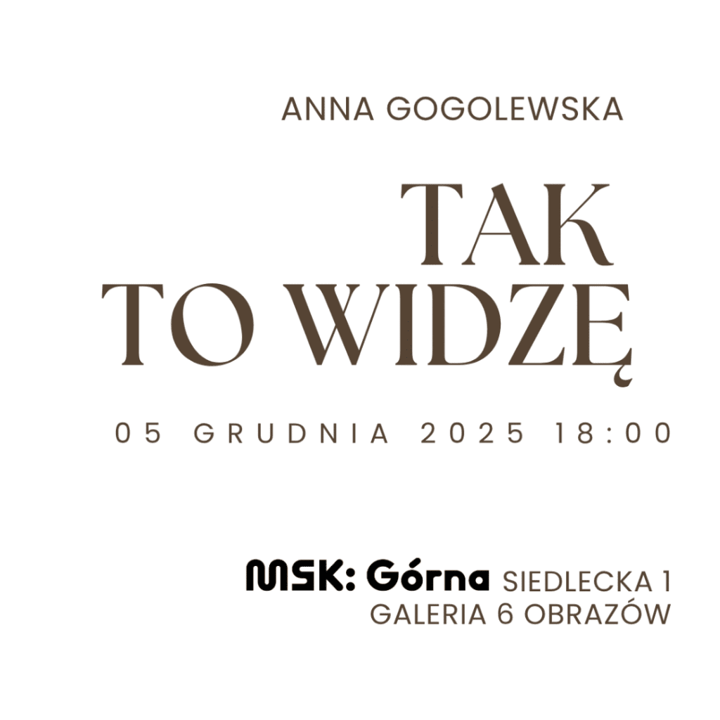 Zapraszamy na wernisaż wystawy malarstwa „Tak to widzę” Anny Gogolewskiej, który odbędzie się w Galerii 6 Obrazów Ośrodka Górna przy ul. Siedleckiej 1 w Łodzi 5 grudnia 2025 r. o godzinie 18:00.     O wystawie: ,,Malowanie pojawiło się w moim życiu w ubiegłym roku, jako powrót do lat wczesnej młodości z jednej strony. Z […]