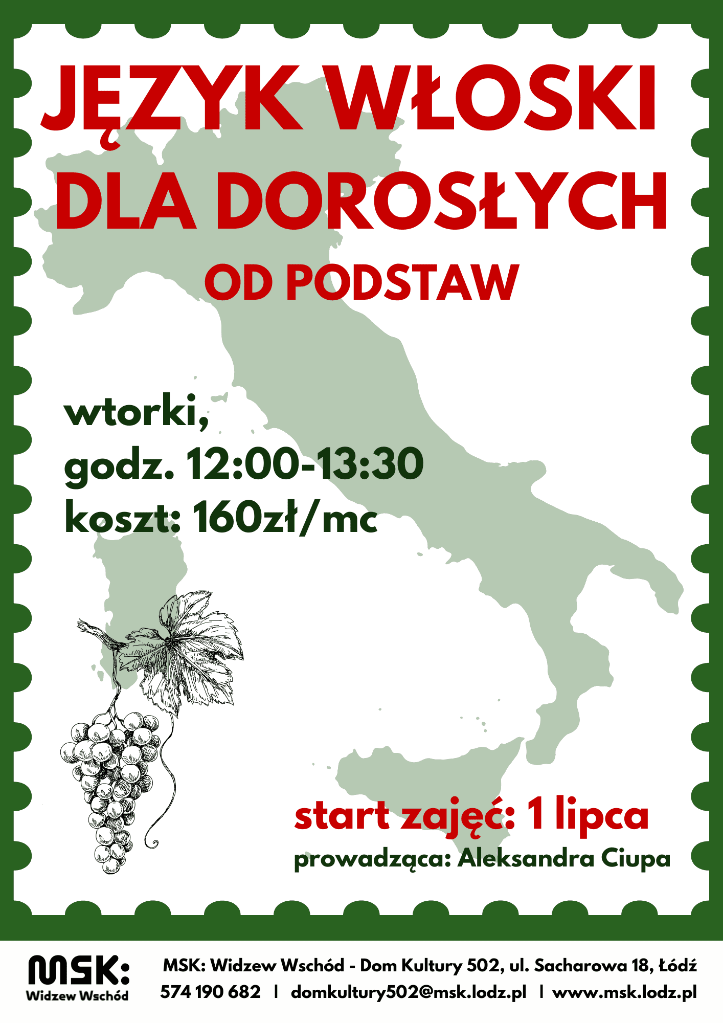 Już w wakacje rozpocznij naukę języka włoskiego i zapisz się na kurs do MSK: Widzew Wschód – Domu Kultury 502.