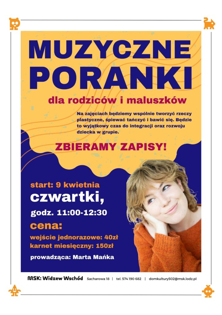 Zapisy: online lub domkultury502@msk.lodz.pl, 574190682