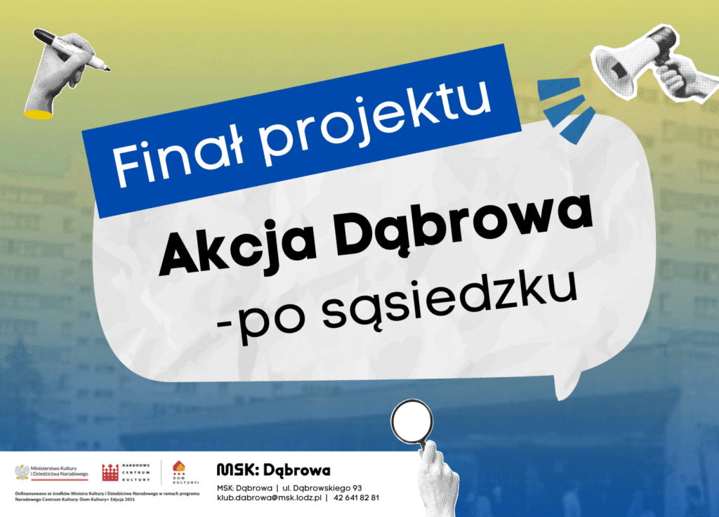 Finał projektu! Wernisaż Archiwum Fotograficznego Mieszkańców Dąbrowy7. listopad | 17:30 Wspólna opowieść o naszej dzielnicy, spleciona z obrazów przeszłości i teraźniejszości. To coś więcej niż zdjęcia. To portret Dąbrowy – tej sprzed lat i tej dzisiejszej, tworzonej przez nas wszystkich. „Dźwięki Dąbrowy” oraz „Śpiewnik wspomnień i marzeń”Koncert finałowy: 7 listopada | 18:00 Zapraszamy wszystkich mieszkańców na wyjątkowy koncert tworzony razem z