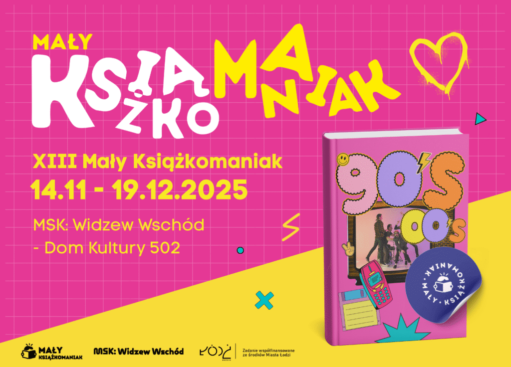 XIII Mały książkomaniak – 90’s kids to nowa odsłona projektu, promującego czytelnictwo. Tym razem zapraszamy Was na kilka wydarzeń, skierowanych do dzieci, ale też do dorosłych, a raczej 90’s kids – dzieciaków lat dziewięćdziesiątych To wyjątkowa edycja poświęcona dzieciom lat 90. i początku 00. – pokoleniu, które dorastało między kasetą VHS a pierwszym Internetem. Spotkamy się, by razem czytać, tworzyć