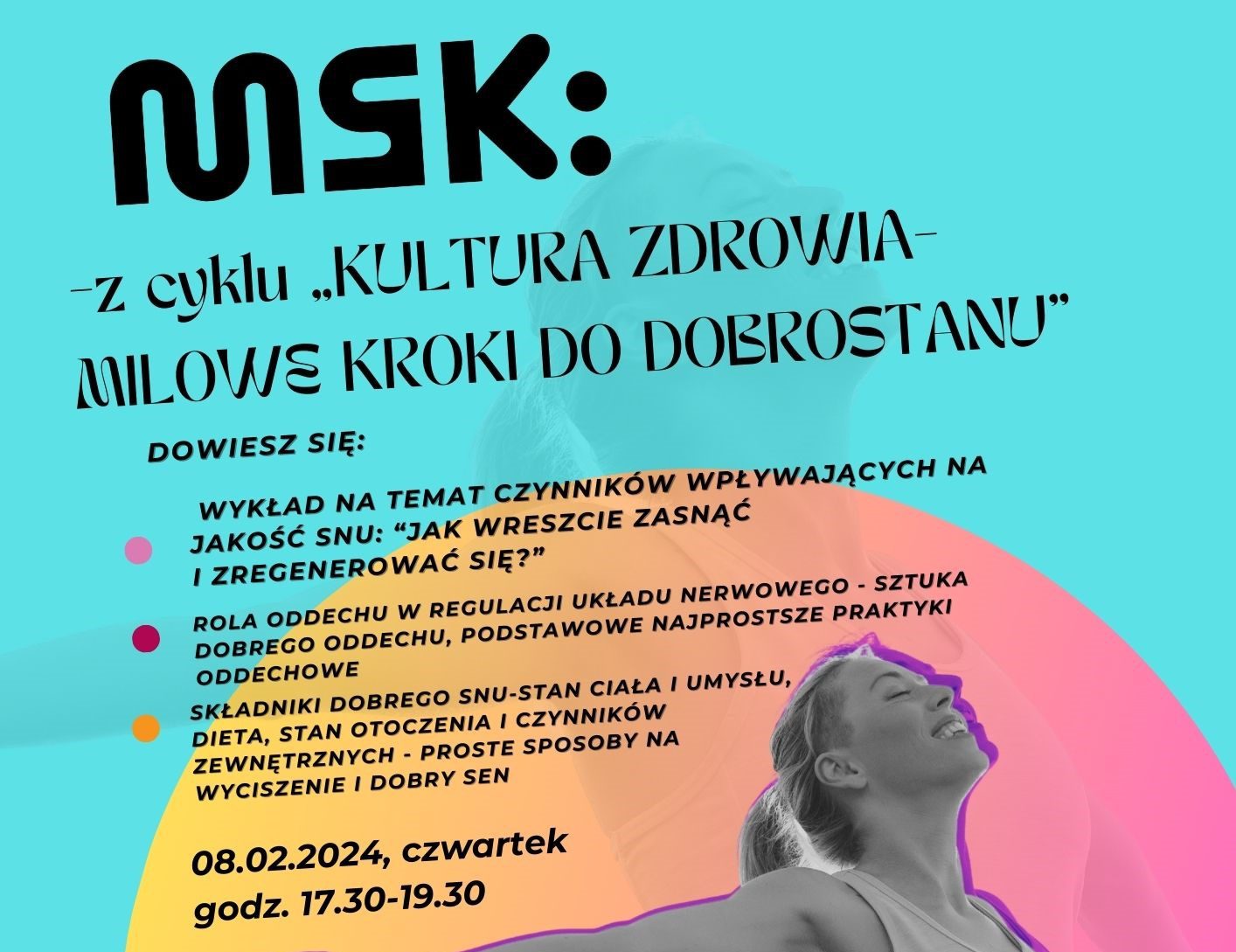 SPOTKANIA ROZWOJOWE SKIEROWANE DO OSÓB DOROSŁYCH I SENIORÓW-„KULTURA ZDROWIA- MILOWE KROKI DO DOBROSTANU” jak pielęgnować długowieczność w kontekście wyzwań XXI wieku.