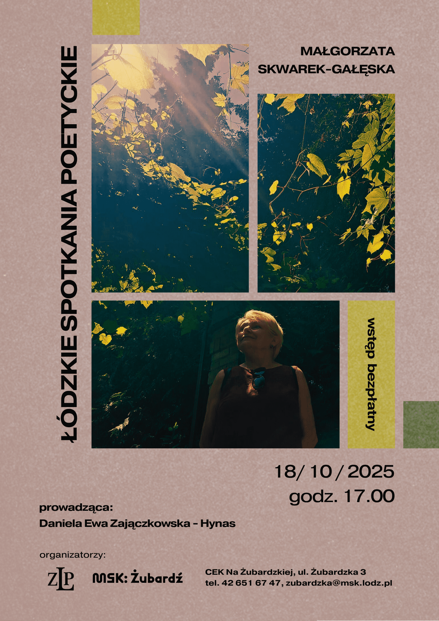 Strona główna Events - MSK Dorośli Literatura Sztuka Wydarzenia ŁÓDZKIE SPOTKANIA POETYCKIE – Małgorzata Skwarek Gałęska