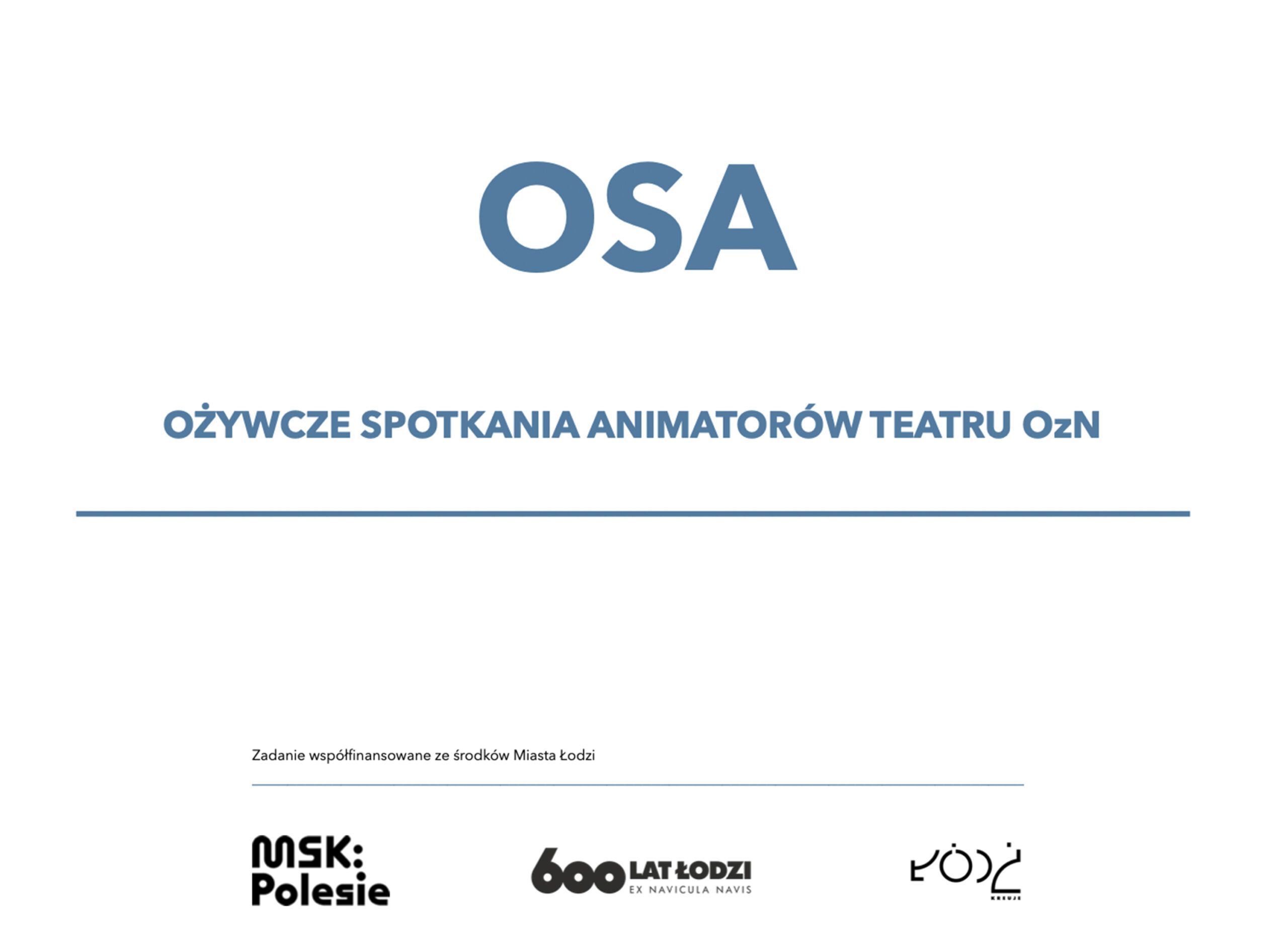 OSA, wydarzenie, podczas którego odbędą się warsztaty, wykład i konferencja, jest przedsięwzięciem dedykowanym wyłącznie osobom pracującym z OzN. Dodatkowym celem działania jest zebranie bazy informacyjnej do stworzenia pierwszej w Polsce platformy www prezentującej teatry działające na rzecz OzN w Polsce.