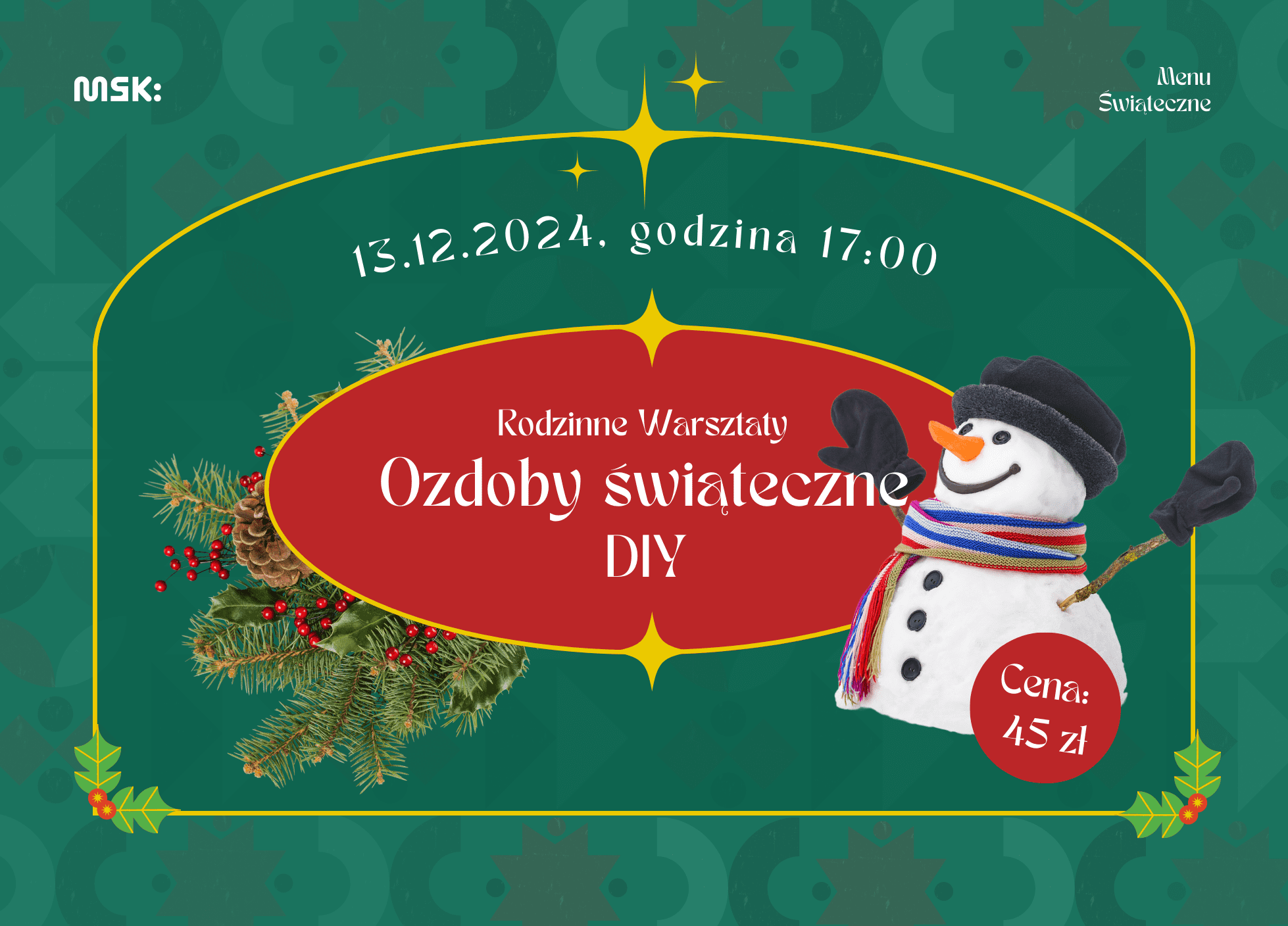 Zapraszamy serdecznie na magiczne rodzinne warsztaty, podczas których wspólnie stworzymy świąteczne dekoracje i poczujemy atmosferę zbliżających się Świąt Bożego Narodzenia!
