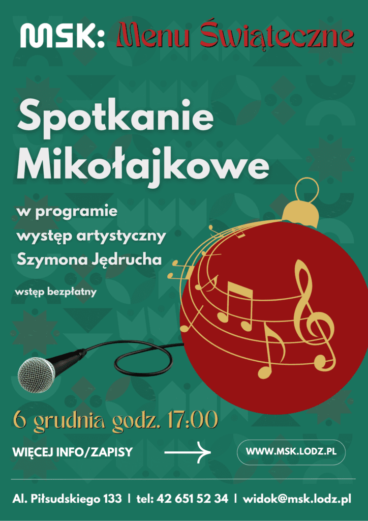 Wspólnie z Radą Osiedla Stary Widzew zapraszamy na spotkanie mikołajkowe w MSK: Stary Widzew. W programie przewidziany jest występ artystyczny Szymona Jędrucha, który wystąpi z bożonarodzeniowym repertuarem.
