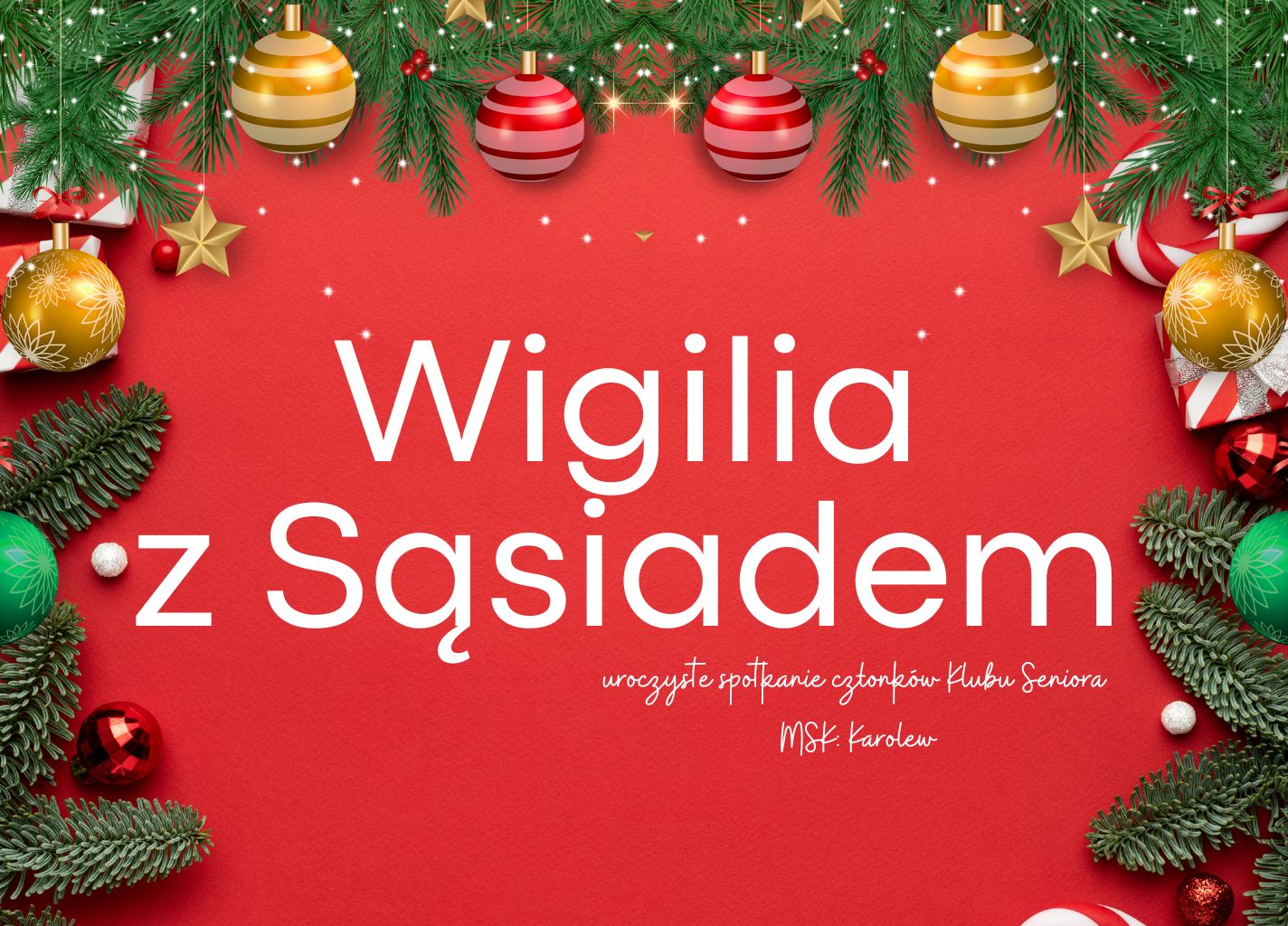 Z okazji świąt Bożego Narodzenia zapraszamy członków Klubu Seniora na uroczyste spotkanie z poczęstunkiem oraz wspólne kolędowanie.