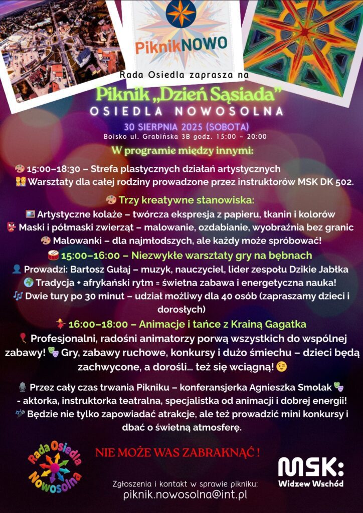 Zapraszamy na Piknik, podczas którego weźmiecie udział w licznych aktywnościach: warsztatach plastycznych, twórczych, animacjach z Krainą Gagatka, koncertach muzycznych, a nawet spróbujecie swoich sił w grze na bębnach!
