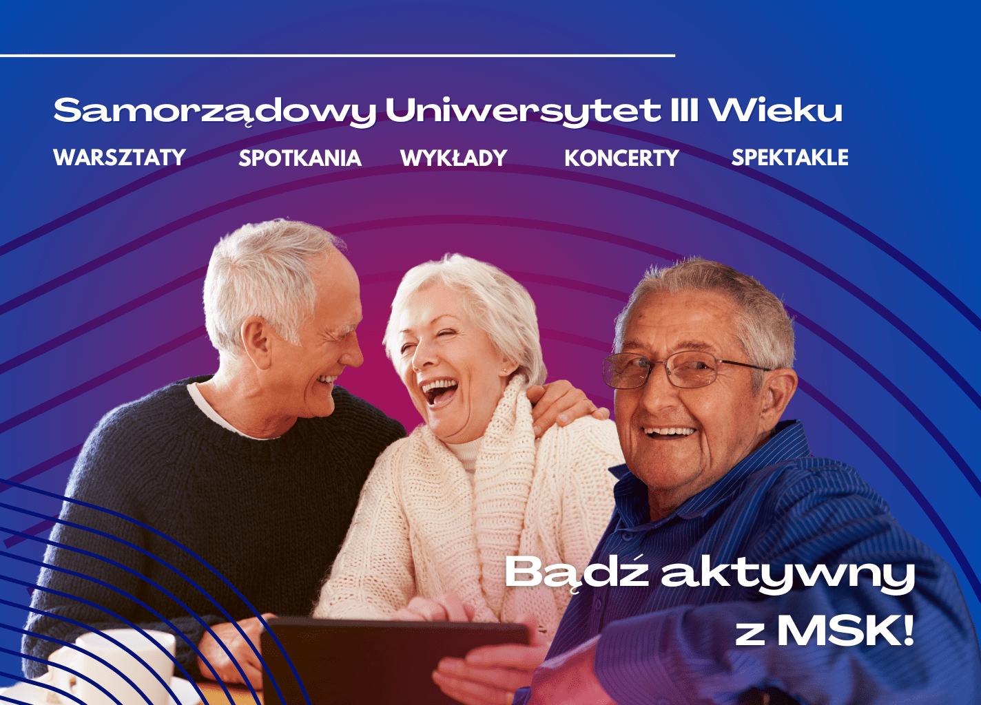 Samorządowy Uniwersytet III Wieku (SUIIIW) jest formą wspomagającą samokształcenie adresowaną do mieszkańców Łodzi, którzy ukończyli 60 lub więcej lat. Miejska Strefa Kultury w Łodzi – filia Centrum Edukacji Kulturowej „Na Żubardzkiej” zrealizowała już cztery edycje przedsięwzięcia. W 2024 roku zakładamy, że zadanie będzie realizowane także w innych filiach MSK, tam, gdzie działają środowiska senioralne, zarówno jeśli chodzi o rekrutację, promocję, jak i realizację wydarzeń chcemy objąć działaniami obszar innych dzielnic Łodzi (w tym inne największe osiedla i skupiska seniorów, np. Chojny, Dąbrowa, Widzew).