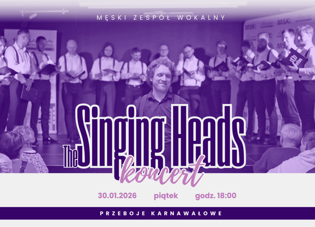 Zapraszamy na koncert zespołu The Singing Heads pod dyrekcją Mariusza Lewego. W repertuarze znajdziecie przeboje karnawałowe, w autorskich aranżacjach i z aktorską interpretacją. Będzie to z pewnością dobrze spędzony czas z dużą dawką dobrej muzyki, energii oraz poczucia humoru. Termin: 30 stycznia 2026 godz. 18:00 The Singing Heads to męski zespół wokalny założony w 2013 […]
