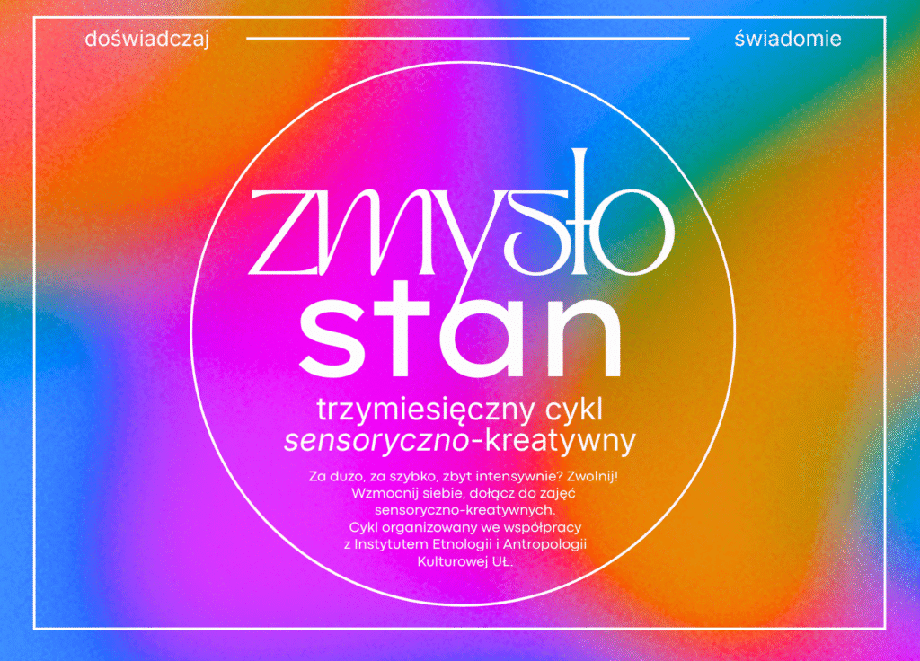 Mój zmysłostan – cykl sensoryczno–kreatywny Chcesz wydobyć potencjał Twoich zmysłów? Są chwile, gdy ciało wie szybciej, niż myśli. Mój zmysłostan to powrót do pogłębionej percepcji – do świadomego, wielozmysłowego bycia w świecie. Podczas 12 spotkań stawiamy na doświadczanie. Poprzez eksperymenty sensoryczne, działania twórcze, partytury somatyczne, będziemy obserwować, w jaki sposób kształtuje się nasza relacja z […]