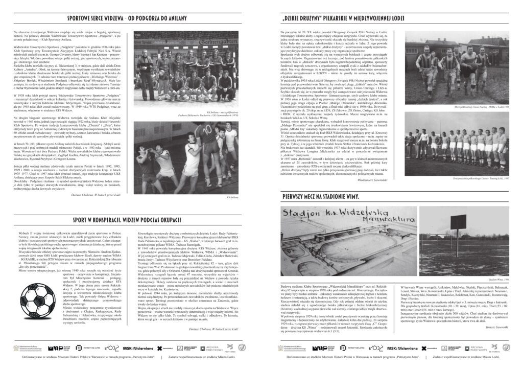 „Widzew dalej w grze – o historii i sportowej tożsamości najstarszego osiedla w Łodzi” to projekt edukacyjno-animacyjny, realizujący nowoczesne podejście do edukacji patriotycznej poprzez pielęgnację tożsamości lokalnej w obszarze „małej ojczyzny” łódzkiego osiedla, poświęcony mało znanej, a niezwykle istotnej historii sportu robotniczego na łódzkim Widzewie – dzielnicy o bogatym dziedzictwie przemysłowym, społecznym i kulturowym. Zadanie zakłada stworzenie interaktywnej mapy historyczno-sportowej dzielnicy oraz towarzyszącego jej dokumentalnego audioprzewodnika i gazety historycznej „Widzewiak Ilustrowany”. Projekt opowiada o lokalnych klubach, obiektach, sportowcach i społecznościach – ukazując sport jako zjawisko kulturotwórcze i spoiwo społeczne.